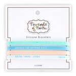 Sets van 4 siliconen armbanden met 4 uniek gekleurde stijlen. Wordt geleverd op een backer-kaart voor eenvoudige weergave.