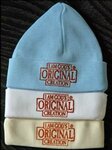 Babymutsje kleur wit, maat: 62-68, Materiaal 100% katoen. Tekst: Geliefd Gedragen Gezegend okergeel.