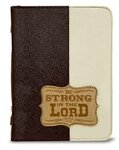 Designer Bijbelhoes met ruggreep. Verfraaid met een door hitte gestempeld citaat uit de Schrift.