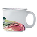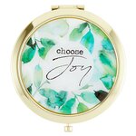 De compacte spiegel heeft een metalen behuizing en prachtige epoxykunst op het deksel.