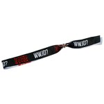 Armband WWJD? What would Jesus do. 2-kleurig bedrukt. Verstelbaar door kogelkraal. Lengte 36cm.