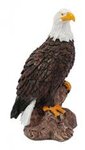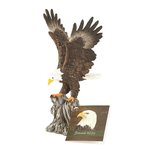 With magnificent detail for a small piece, an eagle is shown coming in for a landing after enjoying a flight, ready to light on a rocky tree stump. Polished base has silver metal plate engraved with the Bible verse reference Isaiah 40:31. Overall height of figurine is 15cm. Made of resin.