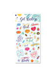 Diverse gekleurde gelstickers. Op elke kleine sticker staan ​​woorden die inspireren.