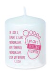 Kerze i am God's original creation Höhe 6 cm, Durchmesser 5 cm Text: ik loof u omdat ik gans wonderbaar ben toebereid.
