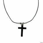 Wood bevelled Cross of 8 1/4 cm on 76cm Leather Cord