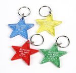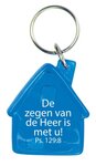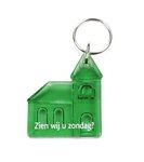 Schlüsselanhänger Kirche Farbe: lila Text: „zien wij u zondag?“ Material: Transparentes Acryl