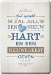 Wij hebben verschillende producten rondom het thema:Hart en Geest" Naar Ezechiel 36:26 waar staat:Ik zal jullie een nieuw hart en een nieuwe geest geven" Deze sleutelhanger is 3x4.5cm Aan de voorkant is de tekst in mooi design uitgeschreven Aan de achterkant een mooi design van een hart