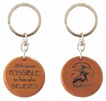 Sleutelhanger hout/leer Vertraue auf denn Herrn