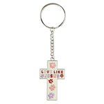 Emaille sleutelhangers Love like Jesus blauw en wit.