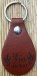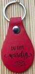 Faux leather keyrings in Dutch, lasered with inspiring texts on the front.