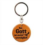 Sleutelhanger rond hout met tekst: Niets is onmogelijk bij God