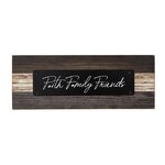 Rustieke:boerderij-stijl" decoratief bordje. Decoratieve metalen plaat bevestigd aan houten plaat met kleine schroeven als extra detail. Afneembare houten pin aan de achterkant voor tafelbladweergave. Elke plaquette is handgemaakt dus geen twee plaatjes zijn precies hetzelfde.Materiaal: papier-hout-metaal.Afmeting 21,6x8,2x0,6cm